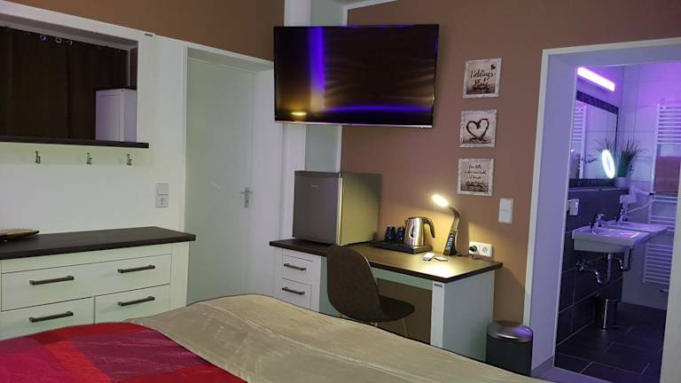 Die Zimmer in der Pension Hoefti sind mit einem Schreibtisch und einem Flachbild-TV ausgestattet. Des Weiteren besitzen sie einen Wasserkocher. Ausgewählte Zimmer verfügen zusätzlich über eine Küche, die mit einem Geschirrspüler, einem Ofen und einer Mikrowelle ausgestattet ist. Es liegt Bettwäsche und Handtücher in den Zimmern bereit.