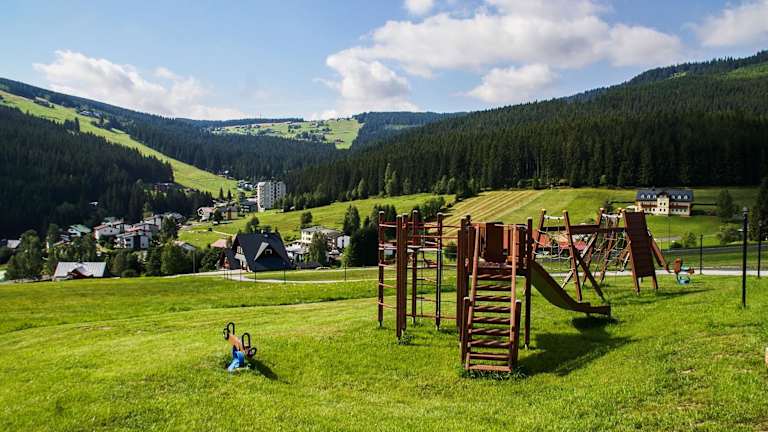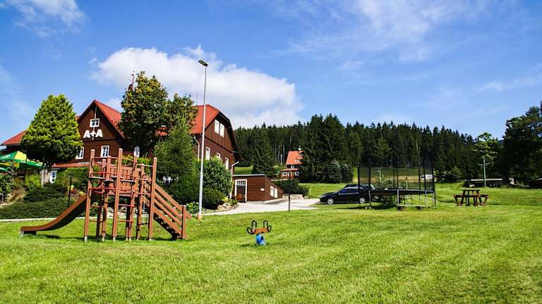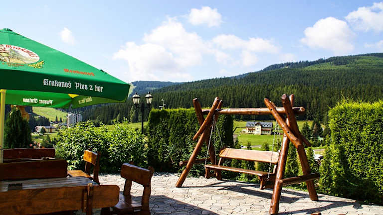 Die Horska Chata Penzion A+A befindet sich in Pec pod Sněžkou und bietet eine ideale Lage für Skifahrer. Das Hotel liegt direkt neben der Skipiste Na Velké Pláni und bietet somit einen direkten Zugang zu den Pisten. Die Seilbahn auf die Schneekoppe ist nur 1 km entfernt. In der Umgebung finden Sie auch das Stadtzentrum von Pec pod Sněžkou, ein Spa- und Fitnesscenter sowie ein Schwimmbad, die alle nur 3 Gehminuten entfernt sind.