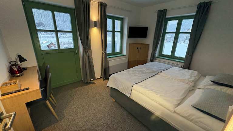 Jedes Zimmer in der Pension Jitřenka Hřensko ist mit einem Schreibtisch, einem Flachbild-TV und einem eigenen Badezimmer ausgestattet. Zur Ausstattung gehören außerdem Bettwäsche, Handtücher und ein Kühlschrank. Einige Zimmer verfügen über einen Balkon und bieten einen Blick auf die Berge. Im Rezeptionsbereich sind Safes verfügbar.