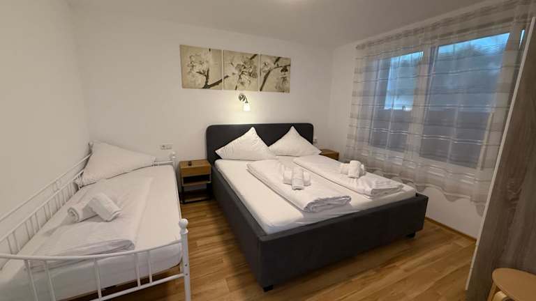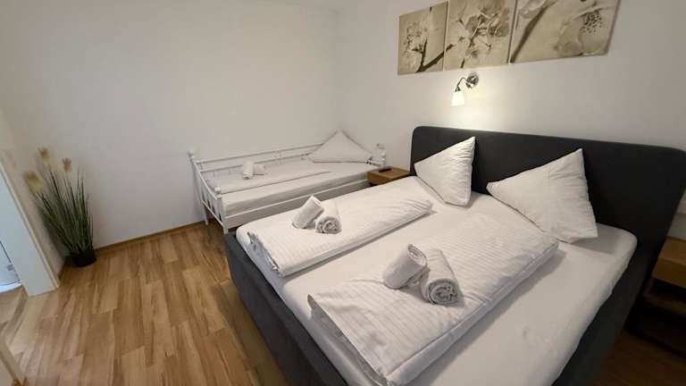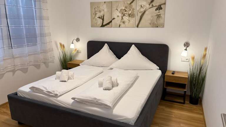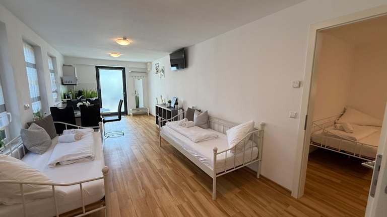 Die Kern Apartments bieten geräumige Unterkünfte mit einer Vielzahl von Annehmlichkeiten. Jedes Apartment verfügt über eine Terrasse, auf der Sie die frische Luft und die Aussicht genießen können. Im Inneren finden Sie einen komfortablen Sitzbereich und einen Flachbild-Sat-TV für Ihre Unterhaltung. Die Küche ist komplett ausgestattet, so dass Sie Ihre eigenen Mahlzeiten zubereiten können. Das private Badezimmer ist mit einem Haartrockner ausgestattet. Für zusätzlichen Komfort sind ein Kühlschrank, eine Mikrowelle, ein Kochfeld, eine Kaffeemaschine und ein Wasserkocher vorhanden.