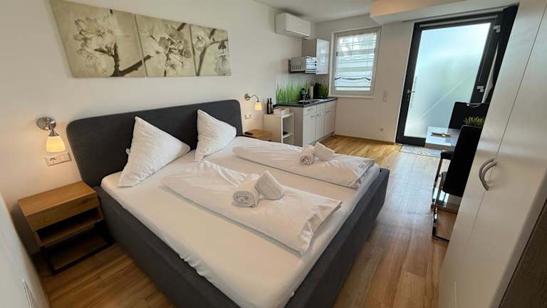 In den Kern Apartments haben Sie die Freiheit, Ihre eigenen Mahlzeiten zuzubereiten. Die voll ausgestattete Küche bietet Ihnen alle notwendigen Geräte und Utensilien. Alternativ können Sie auch eines der nahegelegenen Restaurants besuchen und die lokale Küche genießen. Rust bietet eine Vielzahl von gastronomischen Einrichtungen, darunter traditionelle deutsche Restaurants und internationale Küche.