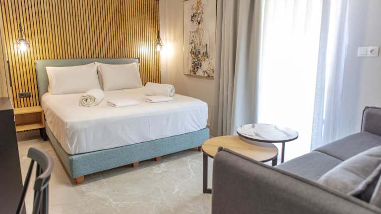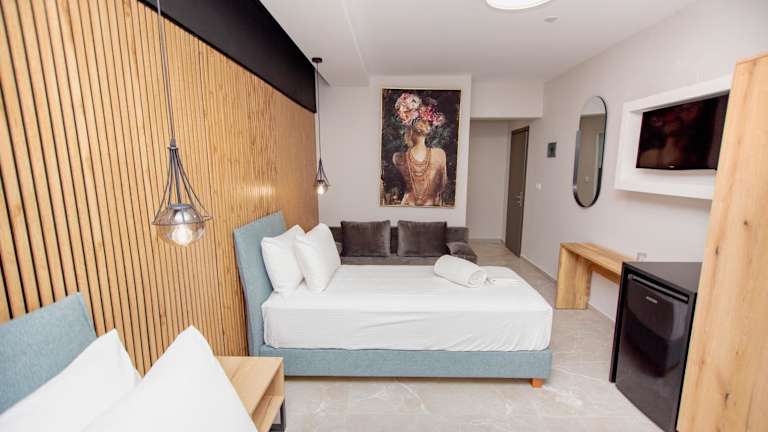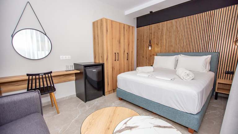 Die Zimmer in der Pension Konstantinoupolis sind komfortabel und gemütlich eingerichtet. Jedes Zimmer verfügt über ein eigenes Bad, eine Klimaanlage, einen Flachbild-TV und einen Kühlschrank. Hier können Sie sich nach einem Tag am Strand entspannen und erholen.