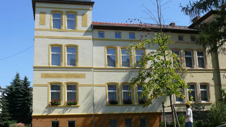Die Pension Kreisel in Bad Kösen ist die ideale Unterkunft für Ihren Aufenthalt im Kurviertel von Naumburg. Mit ihrer zentralen Lage und der Nähe zu den berühmten Salzwerken bietet die Pension eine gemütliche Atmosphäre und eine Vielzahl von Annehmlichkeiten. Genießen Sie die eigene Terrasse und die Liegewiese mit Grillmöglichkeiten. Die klassisch eingerichteten Zimmer sind mit allen notwendigen Annehmlichkeiten ausgestattet und das reichhaltige Frühstücksbuffet lässt Sie gut gestärkt in den Tag starten.