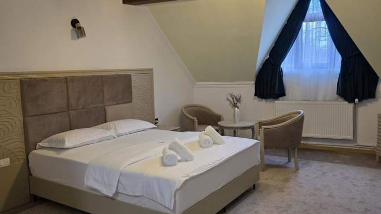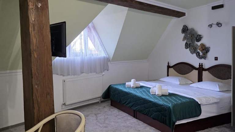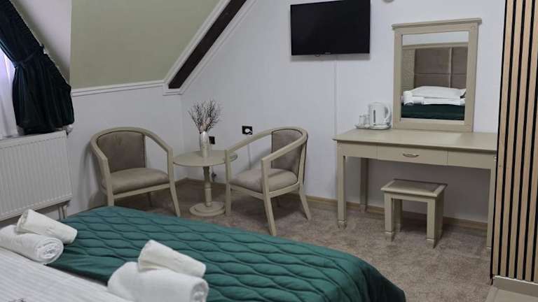 Die Pension La Cetate in Târgu Neamţ ist eine ruhig gelegene Unterkunft mit einem Haupthaus und mehreren Bungalows. Sie befindet sich in der Nähe eines Waldes und ist nur wenige Gehminuten von der Zitadelle Neamţ und dem Haus von Ion Creanga entfernt. Die Zimmer sind geräumig und mit allen Annehmlichkeiten wie Klimaanlage, Sitzbereich, Flachbild-TV und eigenem Bad ausgestattet. WLAN und Parkplätze stehen den Gästen kostenlos zur Verfügung. Im Restaurant der Pension können Sie traditionelle rumänische Gerichte genießen. Der Bahnhof Târgu Neamţ ist 2 km entfernt und Neamţ sowie das Kloster Agapia sind jeweils 10 km entfernt.