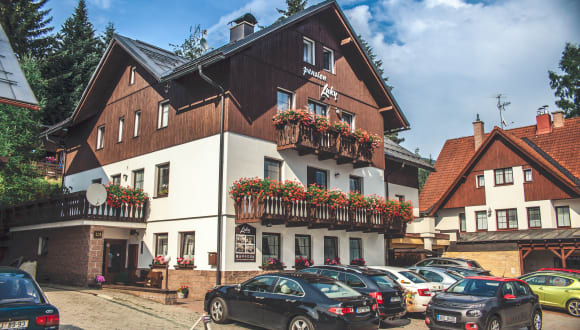 In der ruhigen Gegend Bedřichov in Špindlerův Mlýn erwartet Sie die familiengeführte Pension Luky. Hier wohnen Sie 500 m vom Skigebiet Medvědín und 1 km vom Stadtzentrum sowie dem Skigebiet Sv. Petr entfernt. Freuen Sie sich auf Zimmer und Apartments mit Sat-TV und einem DVD-Player. In der gesamten Unterkunft steht kostenfreies WLAN zur Verfügung. Alle Unterkünfte bieten ein eigenes Badezimmer mit einer Dusche oder einer Badewanne und einem Haartrockner. Die Apartments sind zudem mit einfachen Kochmöglichkeiten ausgestattet. Einige Unterkünfte verfügen über einen Balkon und Bergblick. Im Gemeinschaftsraum der Unterkunft wird Ihnen morgens ein Frühstücksbuffet serviert. Entspannen Sie auch im Garten mit einer Terrasse oder in der gemütlichen Lounge. Erholung verspricht außerdem die Sauna. Im Zentrum von Špindlerův Mlýn befinden sich Geschäfte, Restaurants sowie eine Bushaltestelle. Ein Skibus hält 150 m von der Unterkunft entfernt. Langlaufloipen und Radwege verlaufen ebenfalls in der Nähe. Von der Luky Pension gelangen Sie nach 100 m zu einem Tennisplatz im Freien. Ein Innenpool und Massageanwendungen werden 300 m entfernt angeboten. Einen Abenteuer- und einen Wasserpark erreichen Sie jeweils nach einer 5-minütigen Fahrt. An der Unterkunft finden Sie kostenfreie Privatparkplätze.
