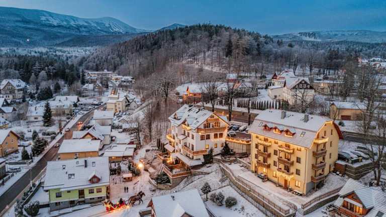 Das Hotel Willa Petrus befindet sich im Herzen von Karpacz und liegt nur 200 m vom Aquapark-Komplex entfernt. Die zentrale Lage ermöglicht es Ihnen, bequem zu Fuß zahlreiche Restaurants und Bars zu erreichen. In der Umgebung gibt es auch viele Aktivitäten und Sehenswürdigkeiten, die es zu erkunden gilt.