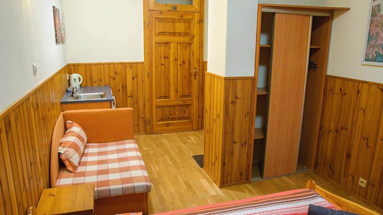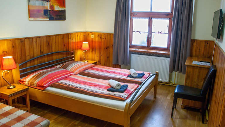 Die Penzión Pod bránou in Poprad ist ein gemütliches und familienfreundliches Gästehaus, nur 400 m vom Thermalpark Aqua City entfernt. Der gepflegte Innenhofgarten lädt mit Sitzgelegenheiten, einer Rutsche und Hängematten zum Entspannen ein. WLAN und Parkplätze sind kostenlos verfügbar. Die Zimmer sind liebevoll eingerichtet und verfügen über Holzböden und holzgetäfelte Wände. Zur Ausstattung gehören Kabel-TV, ein kleiner Kühlschrank und ein Wasserkocher. Einige Zimmer bieten zudem eine Küche. Auf Anfrage wird in einer nahegelegenen Partnerunterkunft ein frisch zubereitetes Frühstück serviert. Die Penzión Pod bránou ist ein idealer Ausgangspunkt, um die Hohen Tatra zu erkunden, die nur 12 km entfernt liegt. Der Flughafen Poprad ist in 4 km erreichbar, während die Innenstadt, der Bahnhof und der Busbahnhof zu Fuß in 25 Minuten erreichbar sind.