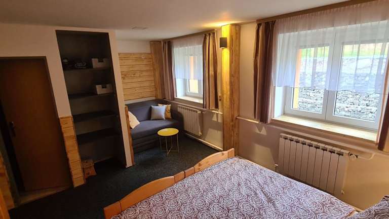 Die Zimmer und Suiten der Pension Popelka sind schlicht, aber gemütlich eingerichtet und verfügen über solide Holzmöbel. Die meisten Unterkünfte haben ein Gemeinschaftsbad, aber es gibt auch einige Zimmer mit eigenem Bad. WLAN steht Ihnen in allen Unterkünften kostenfrei zur Verfügung. Die schlichte Einrichtung sorgt für eine entspannte Atmosphäre und lädt zum Wohlfühlen ein.