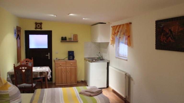 Die Ferienwohnung umfasst ein Schlafzimmer, ein Flachbild-TV und eine Küche. Die Zimmer sind schallisoliert und mit Heizung ausgestattet. Bettwäsche, Handtücher und andere Wäschestücke werden gemäß den Richtlinien der örtlichen Behörden gewaschen.
