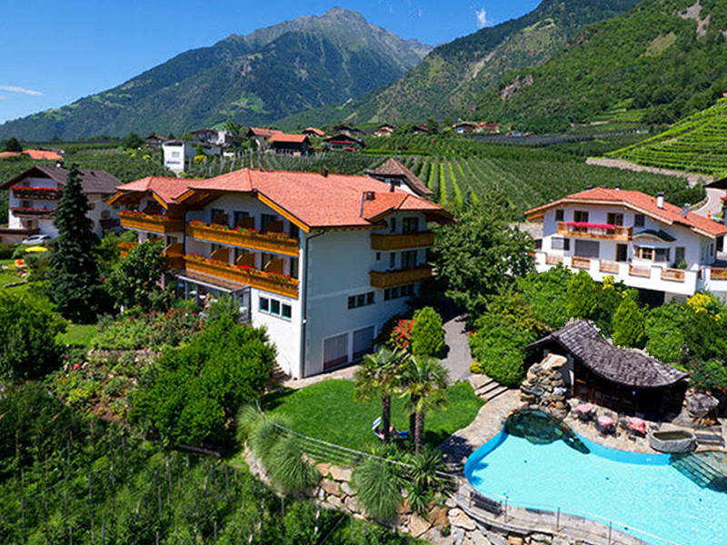In sonnenverwöhnter Hanglage mit traumhaftem Blick in die Bergwelt des Meraner Landes, umgeben von Obst- und Weingärten finden Sie Zeit zum Lachen, um Dinge wachsen zu lassen, sich wieder an Kleinigkeiten zu erfreuen und sich zu begeistern.