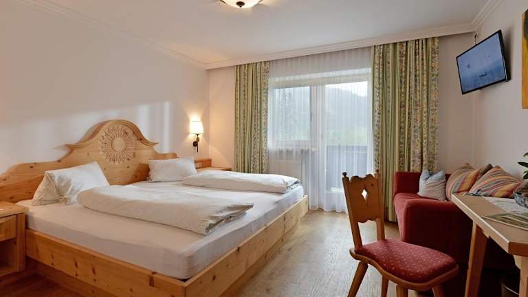 Die Zimmer in der Pension Sunnbichl sind gemütlich eingerichtet und verfügen über Holzmöbel, einen Sitzbereich, einen TV und einen Balkon mit Blick auf das Kitzbüheler Horn oder den Wilden Kaiser. Zur Entspannung steht Ihnen eine Infrarotkabine und eine Sauna zur Verfügung.