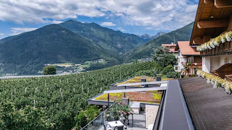 Wir sind eine kleine familiär geführt Pension in einmalig schöner Panoramalage hoch über Brixen. Zehn Autominuten vom mittelalterlichen Stadtzentrum entfernt im kleinen Dorf Raas inmitten von Apfelanlagen und grünen Wiesen, erholen Sie sich in ruhiger Atmosphäre fernab von jedem Trubel. Gleichzeitig ist unser Haus Ausgangspunkt für Bergwanderungen, Touren in die Dolomiten, oder zum Skifahren in einem der reihum gelegenen Skigebiete. Im Herbst ist Törggelen ein Muss. Für Kulturinteressierte sind zahllose Ziele wie etwa das nahegelegene Stift Neustift oder das mittelalterliche Brixen sehenswert. In ca. 30 Autominuten erreichen Sie Bozen, Sterzing oder Klausen; oder aber Sie bleiben in Raas und genießen die Aussicht von Ihrem Balkon, relaxen auf der Liegewiese, trinken Kaffee auf unserer Sonnenterasse oder Sie wandern ins Biotop Raier Moos (5 Minuten) und beobachten geschützte Vogelarten oder seltene Pflanzen. Am Abend verwöhnen wir Sie!