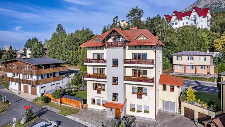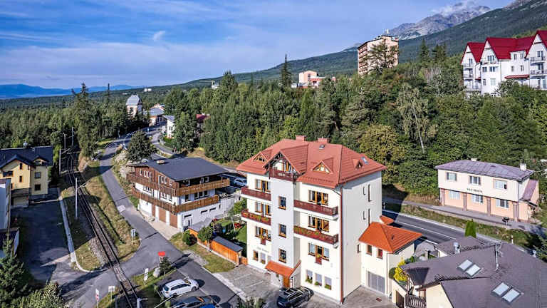 Die Villa Krejza liegt in einer ruhigen Umgebung, nur 10 Gehminuten vom Zentrum von Stary Smokovec entfernt. Von hier aus haben Sie einen wunderschönen Panoramablick auf die Hohe Tatra. Die Lage des Hotels ist ideal für Aktivitäten im Freien, da es in der Nähe von Skipisten, Wander- und Mountainbike-Strecken liegt. Die Straßenbahn zwischen Tatranska Lomnica und Strbske Pleso hält direkt hinter der Villa Krejza, so dass Sie bequem die Umgebung erkunden können.