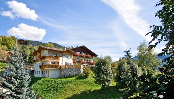 Die Pension Volgger*** liegt im sonnigen Rodeneck bei Brixen auf ca. 850 m Meereshöhe in ruhiger Lage, nur wenige Schritte vom Schloss Rodenegg entfernt. Die Ski & Almenregion Gitschberg Jochtal ist in wenigen Kilometer erreichbar und auch die Städte Bruneck und Innsbruck sind nicht weit entfernt. Die Pension Volgger*** bietet Ihnen die perfekte Mischung aus einzigartigen Aktivitäten, Entspannung und Genuss. Egal ob Single, Paar- oder Familienurlaub, bei uns sind Sie richtig. So können Sie durch die geschickte Ausgangslage direkt vom Haus weg starten und machen Urlaub vom Auto - genießen Sie mit der Almencard viele exklusive Vorteile wie kostenlose Benutzung aller öffentlichen Verkehrsmittel in Südtirol sowie einiger Berg- und Seilbahnen, Teilnahme am spannendes Wochenprogramm von Klettern, Sonnenaufgangswanderung über Weinberg & Biobauernhofbesichtigung bis hin zu geführten Schneeschuhtouren und Winterwanderungen, und Sonderpreise bei Bonuspartnern. Im Winter locken gleich zwei Skigebiete, Gitschberg Jochtal und Plose, zum Pistenspaß und die umliegenden Weihnachtsmärkte sind jedes Jahr aufs Neue einen Besuch wert. Und damit Ihre Auszeit etwas ganz Besonderes werden kann, entspannen und erholen Sie sich in unserem ruhiggelegenen Garten, ideal zum Sonnetanken. Genießen Sie den herrlichen Ausblick in die umliegende Bergwelt, jedes Zimmer verfügt über einen Balkon, und lassen Sie es sich so einfach richtig gut gehen bei uns. Wir wecken Sie mit einem abwechslungsreichen Frühstück mit lokalen Produkten und verwöhnen Sie abends mit einem leckeren Menü mit traditionellen Tiroler Gerichten und italienischer Küche und natürlich mit einem guten Gläschen Wein. Wir freuen uns schon Sie bei uns begrüßen zu dürfen, bis bald. Jessica & Fabio mit Emma und Team
