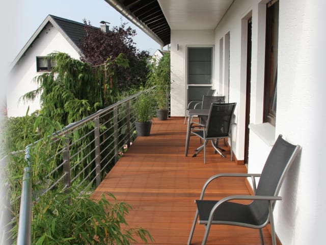 Willkommen im Naturpark Bergisches Land, willkommen in der „Pension Waldesruh“! Fernab von Hektik, Stress und Alltag bieten wir Ihnen die Natur des schönen Bergischen Landes. Die große und liebevoll gepflegte Außenanlage lädt zu jeder Jahreszeit zum Verweilen ein. Liegeflächen, verschiedene -teilweise überdachte- Sitzgelegenheiten, ein überdachter Grillplatz, eine Blockhütte mit Kaminofen, ein Wassertretbecken, ein Bachlauf und der direkt ans Haus grenzende Wald sowie weite Wiesen geben Ihnen die Möglichkeit zum Entspannen. Ein Aufzug ermöglicht auch Rollstuhlfahrern ein angenehmes Wohnen bei uns. Service des Hauses: kostenloser und schneller VDSL/WLAN - Zugang! Unsere Pension wird seit Februar 1972 als Familienbetrieb geführt und ist ganzjährig geöffnet. Im Jahr 2005 erfolgte eine Vergrößerung durch unseren Neubau, der durch einen Aufzug rollstuhlgerechtes und barrierefreies Wohnen ermöglicht. Die beiden Häuser beinhalten komplett eingerichtete Appartement-Wohnungen, die sich sowohl für Einzelübernachtungen als auch für Wochenend-, Urlaubs-, Geschäfts- und Messeaufenthalte eignen. Alle Appartements sind zeitgemäß und gemütlich eingerichtet und haben separate Eingänge. Sie verfügen über Dusche oder Bad, WC, Kochgelegenheit bzw. Küche, ISDN-Telefon sowie kostenlosen DSL-Zugang als Service des Hauses, Sat-TV, Zentralheizung (ganzjährig) und Balkon oder Terrasse. Parkplätze (kostenfrei) sowie Garagenstellplätze (gegen Gebühr) stehen ausreichend zur Verfügung. Berufspendler, Geschäftsreisende, Monteure / Monteurgruppen sind herzlich willkommen! Die "Pension Waldesruh" bietet sich auch hervorragend zum Zeitwohnen / Langzeitmiete an sowie zur Überbrückung von Probezeiten.