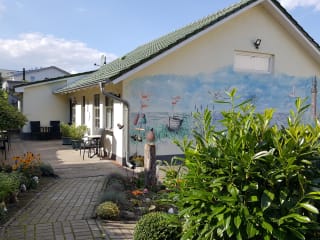Die Pension Weiß befindet sich in Zinnowitz, nur wenige Kilometer von verschiedenen Stränden entfernt. Der Strand Trassenheide ist etwa 1,8 km entfernt, der Strand Zempin 2 km und der Strand Zinnowitz 500 m. Die Unterkunft liegt auch in der Nähe des Baltic Park Molo Aquaparks. In der Umgebung können Sie verschiedene Sehenswürdigkeiten wie den Park Zdrojowy oder die Marienkirche in Greifswald besuchen. Die Universität Greifswald und der Hauptbahnhof Greifswald sind ebenfalls nicht weit entfernt. Der Flughafen Heringsdorf ist der nächstgelegene Flughafen und ca. 36 km entfernt.