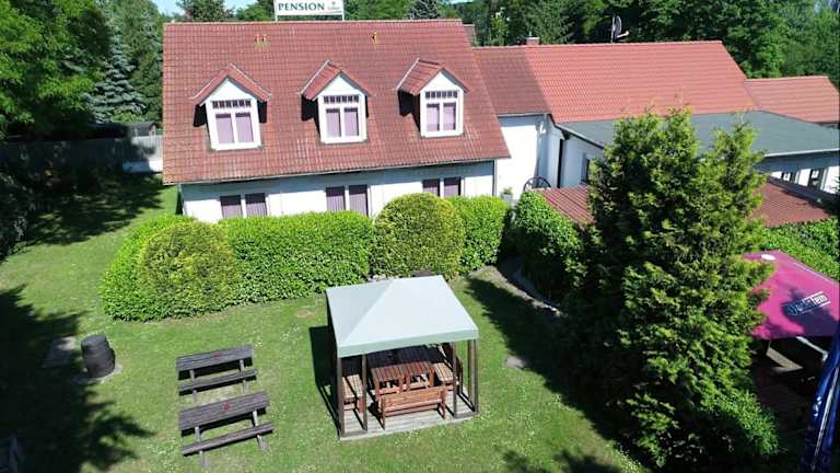 Genießen Sie einen entspannten Aufenthalt im Hotel Pension Zum Lindeneck in Lübz. Die Pension bietet eine ruhige Lage, kostenfreies WLAN und komfortable Zimmer. Starten Sie Ihren Tag mit einem leckeren kontinentalen Frühstück und erkunden Sie die umliegende Region, die mit Sehenswürdigkeiten wie dem Schweriner Schloss und dem Winstongolf begeistert.