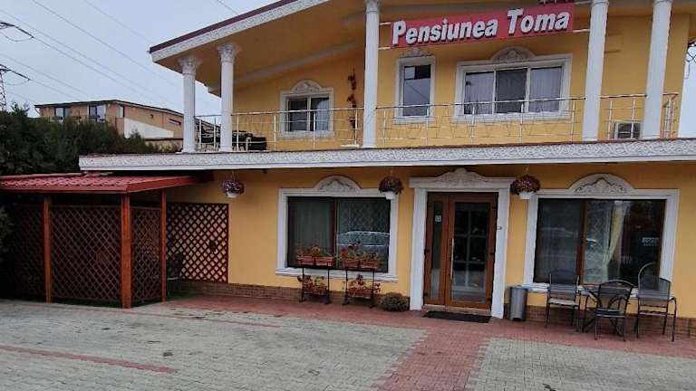 Die Pensiunea Toma bietet Übernachtungsmöglichkeiten in einer Pension mit einem Garten, einem kostenlosen Privatparkplatz, einer Gemeinschaftslounge und einer Terrasse. Diese Unterkunft bietet klimatisierte Zimmer und ist mit einer Bar ausgestattet. Ein Zimmerservice sowie eine rund um die Uhr besetzte Rezeption sind ebenfalls vorhanden. Währungsumtausch ist für die Gäste verfügbar.