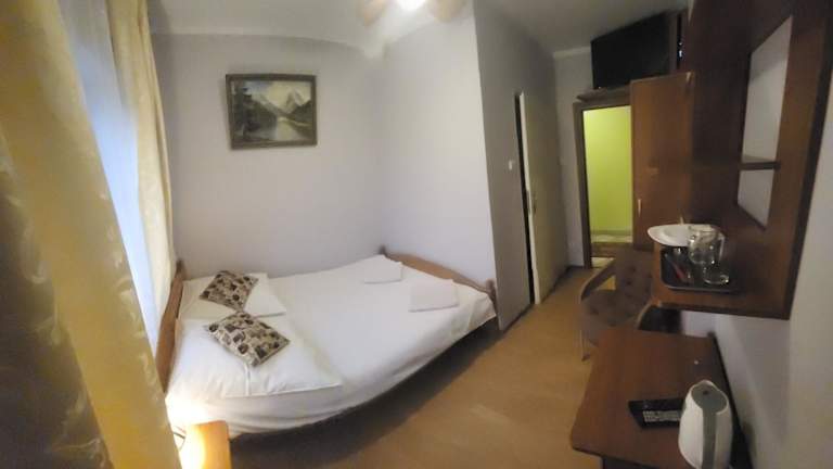 Die Zimmer im Pensjonat Przy Błoniach sind einfach, aber gemütlich eingerichtet und bieten Ihnen alles, was Sie für einen angenehmen Aufenthalt benötigen. Die warmen Pastelltöne der Wände schaffen eine einladende Atmosphäre. Jedes Zimmer verfügt über einen Wasserkocher und einen Kühlschrank für Ihre Bequemlichkeit. Das private Badezimmer ist mit einer Dusche ausgestattet. Kostenloses WLAN und ein TV sorgen für Unterhaltung und Konnektivität während Ihres Aufenthalts.