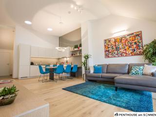 Das Penthouse am Sonnenhang bietet eine exklusive Ausstattung und umfasst einen Garten sowie eine Terrasse. Die Unterkunft bietet kostenfreies WLAN und einen schönen Blick auf die Stadt. Ein kostenloser Privatparkplatz steht zur Verfügung. Es gibt einen Abstellraum für Skier.