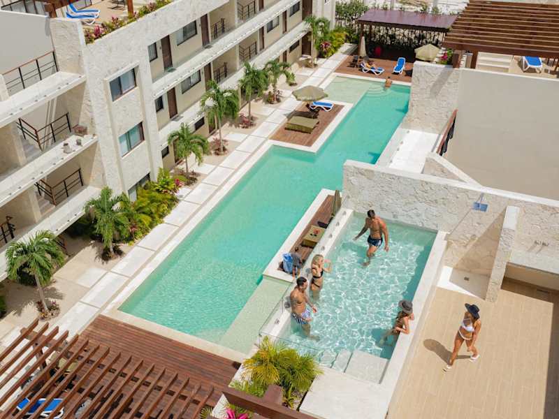 Penthouse Blue Luxury Kukulkan bietet elegante Übernachtungsmöglichkeiten, ausgestattet mit einem Außenpool, einem Innenpool, einem Garten und einer Terrasse. Die Unterkunft stellt kostenloses WLAN und einen Blick auf den Pool zur Verfügung. Die Rezeption ist rund um die Uhr besetzt und es wird ein kostenpflichtiger Flughafentransfer angeboten.