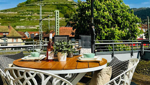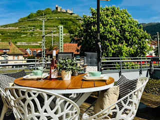 Das Penthouse Burgblick mit Dachterrasse ist eine Ferienwohnung, die über eine Terrasse sowie einen Balkon verfügt und einen schönen Blick auf die Berge bietet. Die Unterkunft wird von einem privaten Gastgeber betrieben und ist eine Nichtraucherunterkunft.