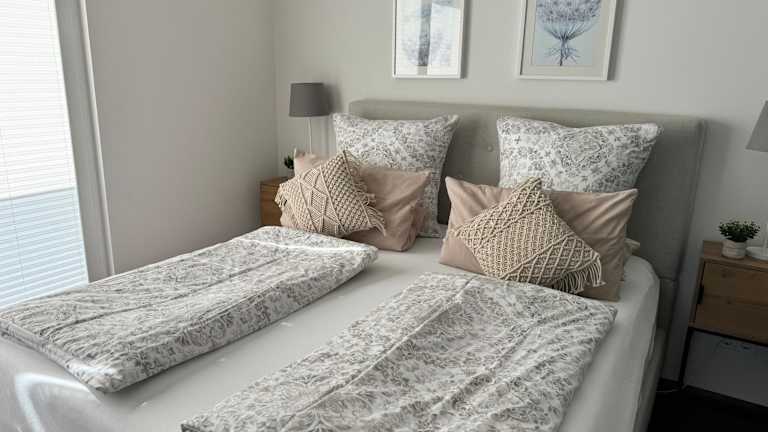 Die Ferienwohnung besteht aus einem Schlafzimmer, einem Wohnzimmer sowie einer gut ausgestatteten Küche, die mit einem Kühlschrank und einem Geschirrspüler versehen ist. Außerdem umfasst sie ein Badezimmer mit Dusche. Handtücher und Bettwäsche werden bereitgestellt.