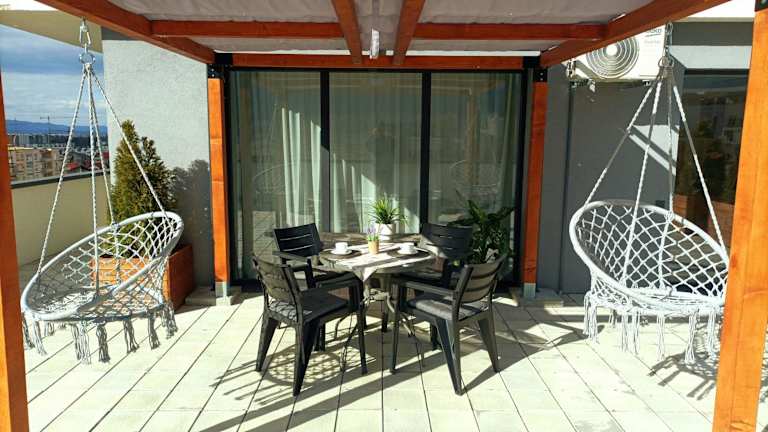 Penthouse City View Infinity bietet Übernachtungsmöglichkeiten mit kostenlosem WLAN und einem kostenlosen Privatparkplatz. Jede Wohneinheit ist mit einer Terrasse ausgestattet, die einen Blick auf die Stadt ermöglicht.