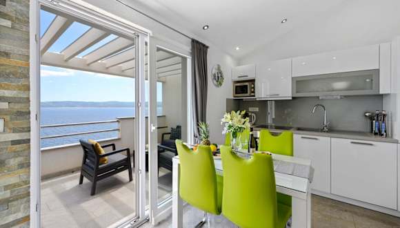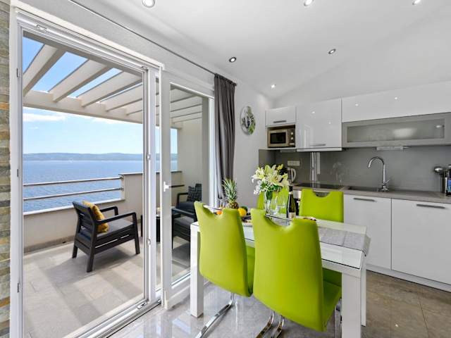 Genießen Sie einen unvergesslichen Aufenthalt im Penthouse Filka in Mimice. Mit herrlichem Bergblick und nur wenige Schritte vom Strand Juto entfernt, bietet dieses Apartment kostenfreies WLAN und kostenfreie Privatparkplätze. Das stilvolle Penthouse verfügt über eine Terrasse mit Meerblick, einen gemütlichen Sitzbereich und einen Flachbild-Sat-TV. Die voll ausgestattete Küche mit Geschirrspüler und Mikrowelle ermöglicht Ihnen die Zubereitung Ihrer eigenen Mahlzeiten. Das private Badezimmer ist mit einer Dusche und einem Haartrockner ausgestattet. Zusätzliche Annehmlichkeiten wie ein Kühlschrank, ein Backofen, ein Kochfeld, ein Wasserkocher, eine Waschmaschine und eine Kaffeemaschine stehen Ihnen ebenfalls zur Verfügung. Erleben Sie erholsame Stunden auf der Terrasse des Penthouses. Der Strand Kutleša East Beach ist nur 450 m entfernt und der Strand Tuna erreichen Sie nach 750 m. Der Flughafen Split befindet sich in einer Entfernung von 43 km.