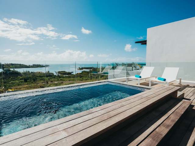 Das Penthouse H70 St Antoine Residence bietet Ihnen einen luxuriösen Aufenthalt mit atemberaubendem Blick auf den Pool und das Meer. Die geräumige Villa verfügt über 4 Schlafzimmer, eine gut ausgestattete Küche und eine Terrasse, auf der Sie die Aussicht genießen können. Das Anwesen bietet zudem kostenloses WLAN und kostenlose Parkplätze. Erkunden Sie die Umgebung mit einem Mietwagen oder nutzen Sie den Flughafentransfer.