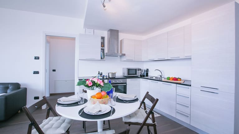 Die Ferienwohnung verfügt über Klimaanlage, zwei Schlafzimmer, ein Wohnzimmer sowie eine voll ausgestattete Küche mit Kühlschrank und Kaffeemaschine. Zudem gibt es ein Badezimmer mit Bidet und Haartrockner. Handtücher und Bettwäsche werden bereitgestellt.