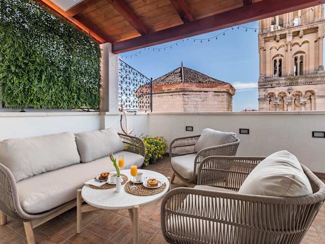 • Die Terrasse bietet einen herrlichen Ausblick und ist ideal zum Entspannen.