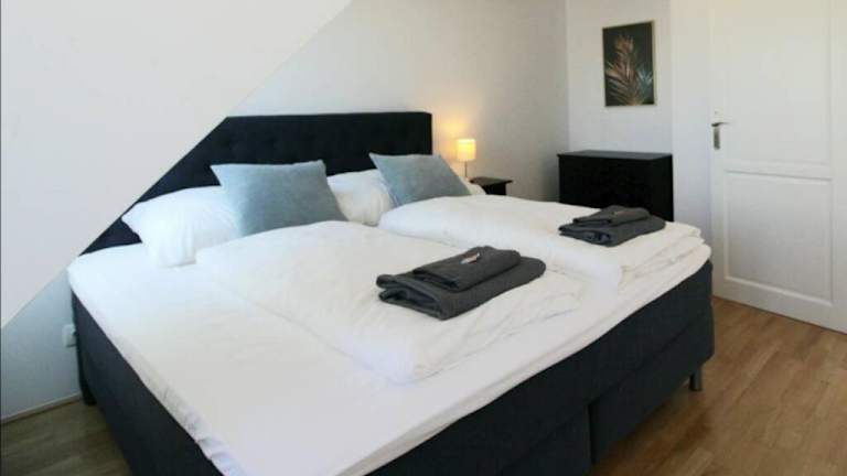 Die Ferienwohnung verfügt über eine Terrasse, ein Schlafzimmer, ein Wohnzimmer sowie eine gut ausgestattete Küche mit Kühlschrank und Geschirrspüler. Handtücher und Bettwäsche werden bereitgestellt.