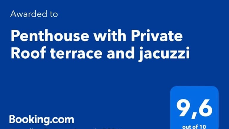 Penthouse with Private Roof terrace and jacuzzi bietet Übernachtungsmöglichkeiten in einer modernen Ferienwohnung und verfügt über einen saisonalen Außenpool, ein Fitnesscenter und einen Garten. Es gibt zudem einen kostenlosen Privatparkplatz.