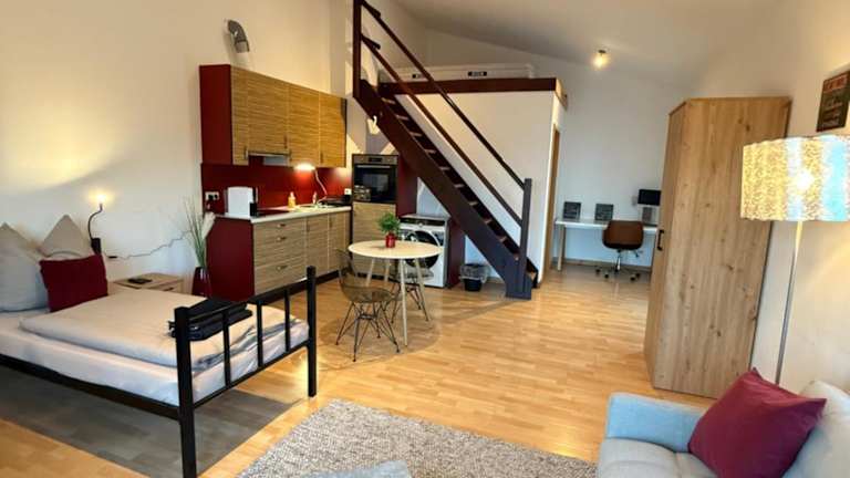 Die Penthousewohnung Leingarten befindet sich in einer günstigen Lage in Leingarten, etwa 7,4 km vom Hauptbahnhof Heilbronn entfernt. Zu den näheren Sehenswürdigkeiten zählen die Städtischen Museen Heilbronn, die 8,2 km entfernt liegen, sowie der Marktplatz Heilbronn und die Kolbenschmidt Arena, die beide in einer Entfernung von etwa 8,4 km zur Unterkunft liegen. Der Flughafen Stuttgart ist der nächstgelegene Flughafen und liegt 81 km von der Ferienwohnung entfernt.
