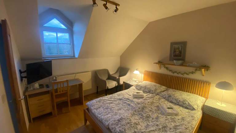 Die Zimmer in der Penzion Červený mlýn sind komfortabel und bieten alles, was Sie für einen angenehmen Aufenthalt benötigen. Jedes Zimmer verfügt über einen Schreibtisch, eine Terrasse mit Gartenblick, ein eigenes Bad, einen Flachbild-TV, Bettwäsche und Handtücher. Zusätzlich gibt es einen Kleiderschrank und eine Kaffeemaschine in jedem Zimmer.