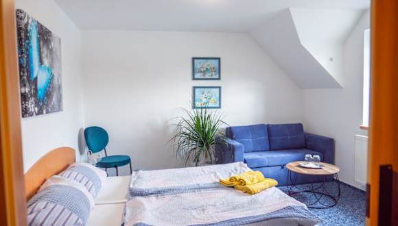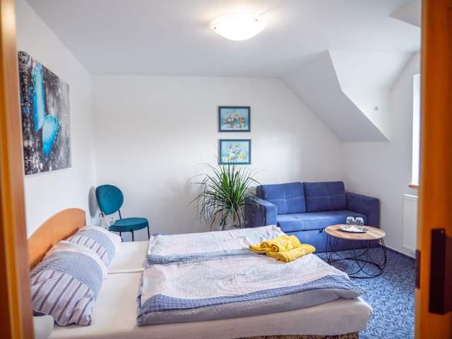 Die Penzion Benešov bietet einen Kinderspielplatz, der ideal für Familien ist. In der Umgebung gibt es zahlreiche Möglichkeiten für Aktivitäten wie Skifahren und Radfahren. Das freundliche Personal an der Rezeption spricht Tschechisch, Deutsch und Englisch und steht Ihnen gerne mit Informationen und Tipps zur Verfügung.