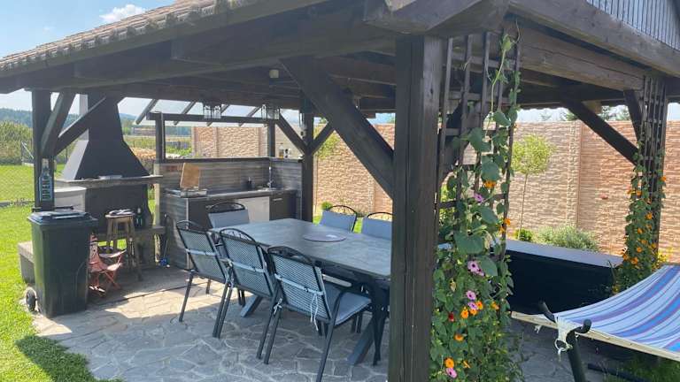 In der Penzion Kameňák gibt es einen schönen Garten mit einem Kinderspielplatz, einem Basketballplatz und einem Sitzbereich im Freien. Hier können Sie sich entspannen, während Ihre Kinder spielen oder eine Partie Basketball spielen. Darüber hinaus stehen Ihnen Grillmöglichkeiten zur Verfügung, so dass Sie im Freien köstliche Mahlzeiten zubereiten und genießen können. In der Umgebung der Pension haben Sie auch die Möglichkeit, Aktivitäten wie Rafting und Kanufahren in einem nahegelegenen Fluss zu unternehmen.