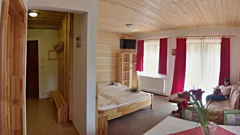 Das Hauptgebäude der Penzion Limba verfügt über einen Frühstücksraum mit einem Kamin, in dem Sie morgens ein köstliches Frühstück genießen können. Außerdem gibt es eine Bar mit einer Sommerterrasse, auf der Sie entspannen und den Tag ausklingen lassen können.