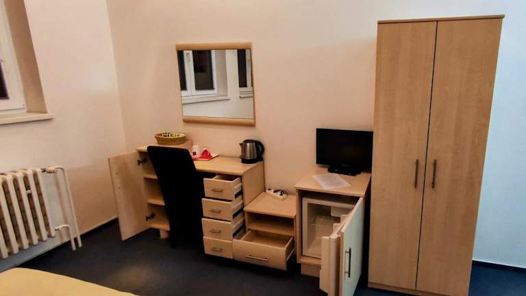 Die Penzion Merlin bietet komfortable Zimmer mit einer Vielzahl von Annehmlichkeiten. Jedes Zimmer verfügt über einen Schreibtisch, einen Flachbild-TV, ein eigenes Bad sowie Bettwäsche und Handtücher. Ein Kühlschrank ist ebenfalls in jedem Zimmer vorhanden, um Ihre Getränke und Snacks kühl zu halten. Genießen Sie den Komfort und die Gemütlichkeit dieser Unterkunft.