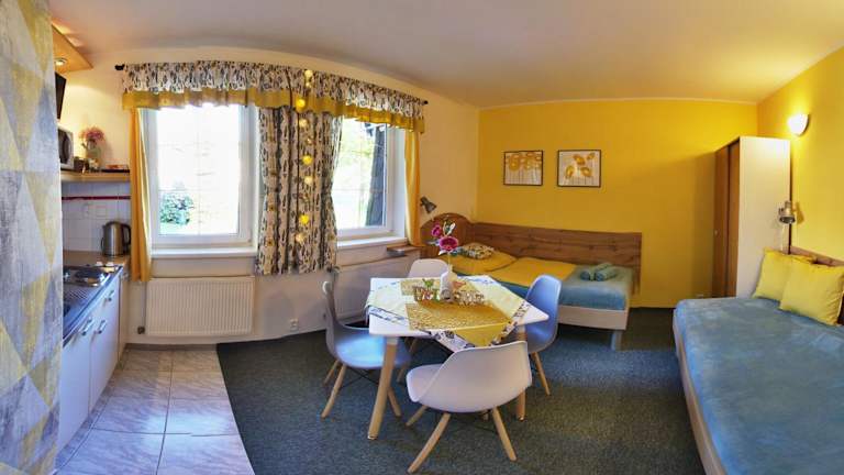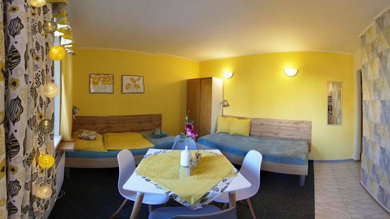 Die Penzion Mini ist eine Nichtraucherunterkunft, die verschiedene Annehmlichkeiten wie einen Garten, kostenloses WLAN in der gesamten Pension sowie Grillmöglichkeiten bietet. Es handelt sich um eine familiengeführte Pension, in der die Gäste die Möglichkeit haben, aktiv zu entspannen. Die Unterkunft hat ein Mindestalter für den Check-in von 18 Jahren und erlaubt keine Haustiere oder Feierlichkeiten wie Junggesellenabschiede. Eine Zahlung per Überweisung ist vor der Anreise erforderlich.