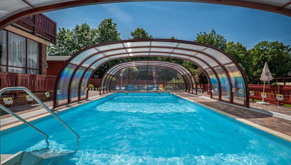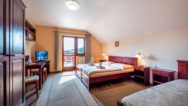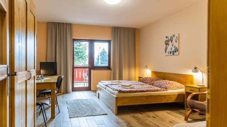 Die Zimmer in der Penzion Motyl sind gemütlich eingerichtet und bieten alle Annehmlichkeiten, die Sie für einen angenehmen Aufenthalt benötigen. Jedes Zimmer verfügt über einen TV, WLAN, einen Balkon, eine Terrasse oder einen direkten Zugang zum Garten. Das Hotel bietet auch einen überdachten Pool, einen Wellnessbereich mit Saunen und Whirlpool, einen Ruheraum mit Kamin sowie einen Kinderspielplatz. Fahrräder und Roller stehen für Erwachsene zur Verfügung. Es gibt auch ein Trampolin und einen Raum für kleinere Veranstaltungen.