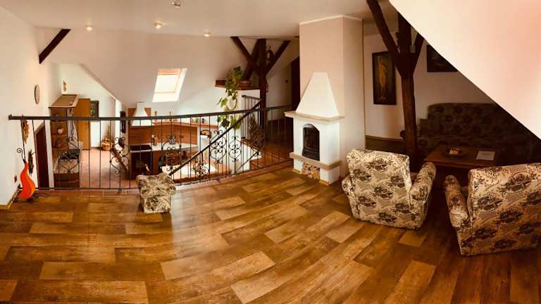Die Penzion Na Růžku befindet sich in der charmanten Stadt Sedlčany und ist ein idealer Ausgangspunkt, um die umliegende Region zu erkunden. Die Stadt Tábor, die nur 38 km entfernt liegt, bietet eine Vielzahl von Sehenswürdigkeiten und Aktivitäten. Der Flughafen Letiště Václava Havla Praha ist ebenfalls gut erreichbar und liegt etwa 72 km von der Unterkunft entfernt.