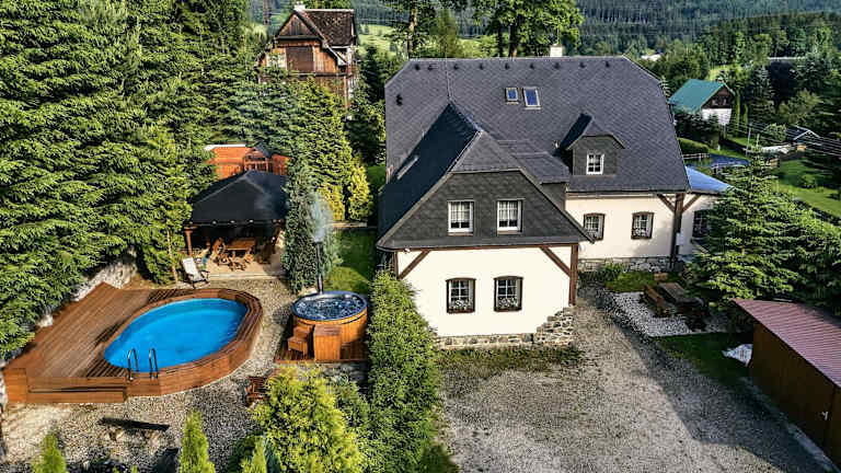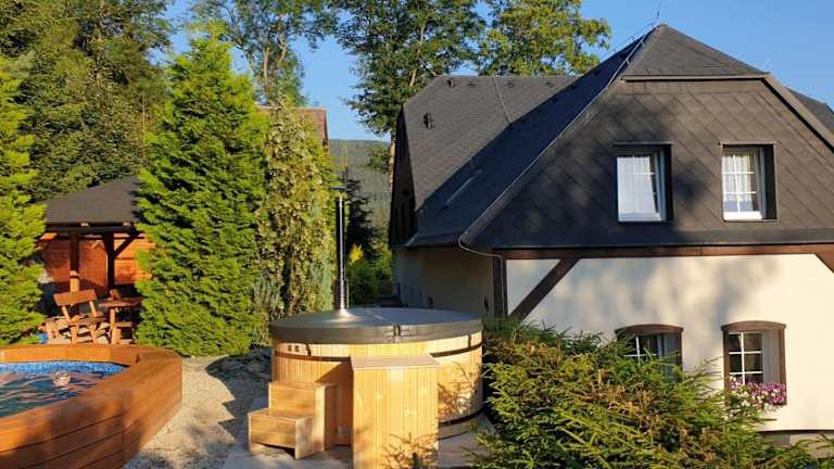 Die Penzion Ostruznik in Ostružná ist der ideale Ort für einen erholsamen Aufenthalt inmitten der Natur. Die Unterkunft bietet komfortable Zimmer, einen saisonalen Außenpool und kostenfreie Parkplätze. Genießen Sie die Sonne auf der Terrasse oder entspannen Sie im Garten. Für Familien gibt es einen Miniclub und der Kinderspielplatz sorgt für Spaß und Unterhaltung. Die Umgebung lädt zu Aktivitäten wie Wandern und Skifahren ein, und Fahrräder können vor Ort ausgeliehen werden. Entdecken Sie die Sehenswürdigkeiten der Region, wie das Papiermuseum Velké Losiny und die Goldmine Złoty Stok. Der Flughafen Pardubice ist ebenfalls gut erreichbar.