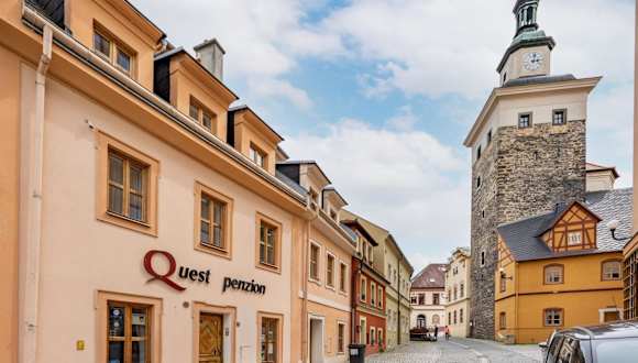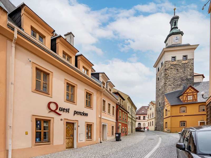 Die Pension Quest ist eine ideale Unterkunft für Reisende, die das charmante Loket erkunden möchten. Das rekonstruierte Haus neben der Burg bietet komfortable Zimmer mit modernen Annehmlichkeiten. Nutzen Sie die Möglichkeit, ein Fahrrad auszuleihen und die Umgebung auf zwei Rädern zu erkunden. Die Nähe zu Sehenswürdigkeiten wie der Burg Loket und der St.-Wenzeslaus-Kirche machen die Pension Quest zu einem ausgezeichneten Ausgangspunkt für Ihre Entdeckungstour.