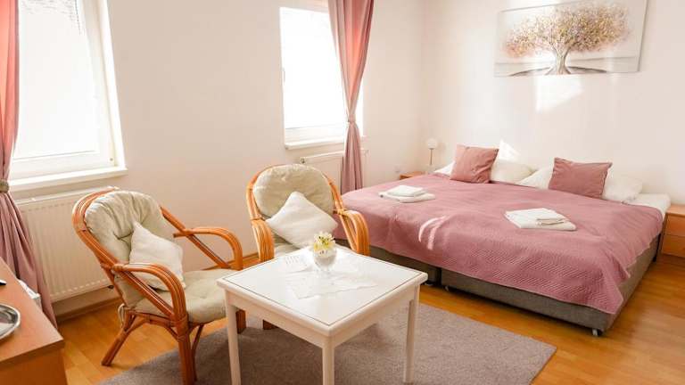 Die Penzion Romantik bietet komfortable Zimmer mit allen Annehmlichkeiten, die Sie für einen angenehmen Aufenthalt benötigen. Jedes Zimmer verfügt über einen Sat-TV, eine Minibar, ein Telefon und ein eigenes Badezimmer mit einer Badewanne, einem Haartrockner und kostenlosen Pflegeprodukten. Hier können Sie sich wie zu Hause fühlen und sich in Ihrer eigenen Oase der Entspannung zurückziehen.