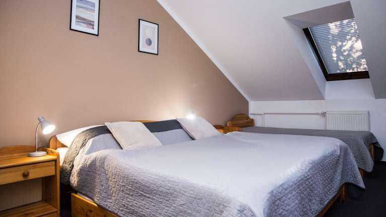 Die Zimmer in der Penzion za mlynom sind mit einem Schreibtisch, einem Flachbild-TV und einem eigenen Badezimmer ausgestattet. Zur Ausstattung gehören auch Bettwäsche und Handtücher. Einige Zimmer verfügen über eine Küche mit Herdplatte und Mikrowelle, zudem sind Kühlschrank und Wasserkocher vorhanden.