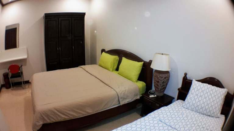 Die Villa umfasst drei separate Schlafzimmer, ein Wohnzimmer sowie eine voll ausgestattete Küche, die mit einem Kühlschrank und einer Mikrowelle ausgestattet ist. Zudem gibt es zwei Badezimmer und einen Flachbild-TV.
