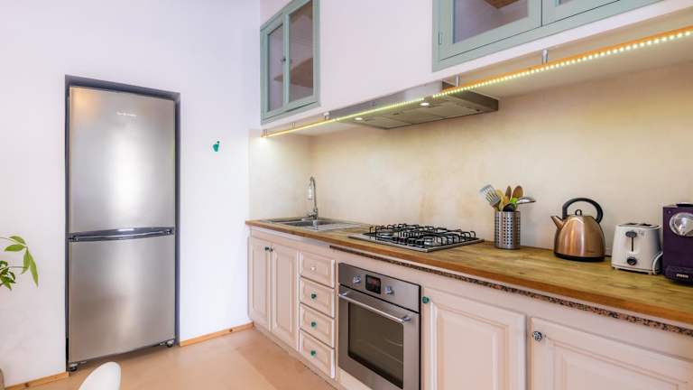 Die Ferienwohnung besteht aus 2 Schlafzimmern, einem Wohnzimmer und einer voll ausgestatteten Küche, die mit einem Kühlschrank und einer Kaffeemaschine ausgestattet ist. Ein Badezimmer mit Dusche und kostenlosen Pflegeprodukten ist ebenfalls vorhanden. Handtücher und Bettwäsche werden zur Verfügung gestellt.