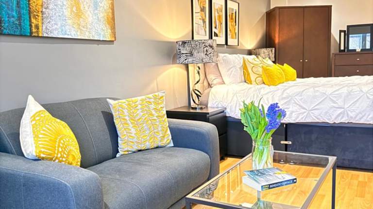 Das Studio-Apartment verfügt über ein gemütliches Schlafzimmer, eine gut ausgestattete Küche mit Mikrowelle und Kühlschrank sowie ein modernes Badezimmer mit Dusche. Im Wohnbereich können Sie sich entspannen und Filme oder Serien auf dem Flachbild-TV mit Netflix schauen. Handtücher und Bettwäsche werden gestellt, um Ihren Aufenthalt so angenehm wie möglich zu gestalten.